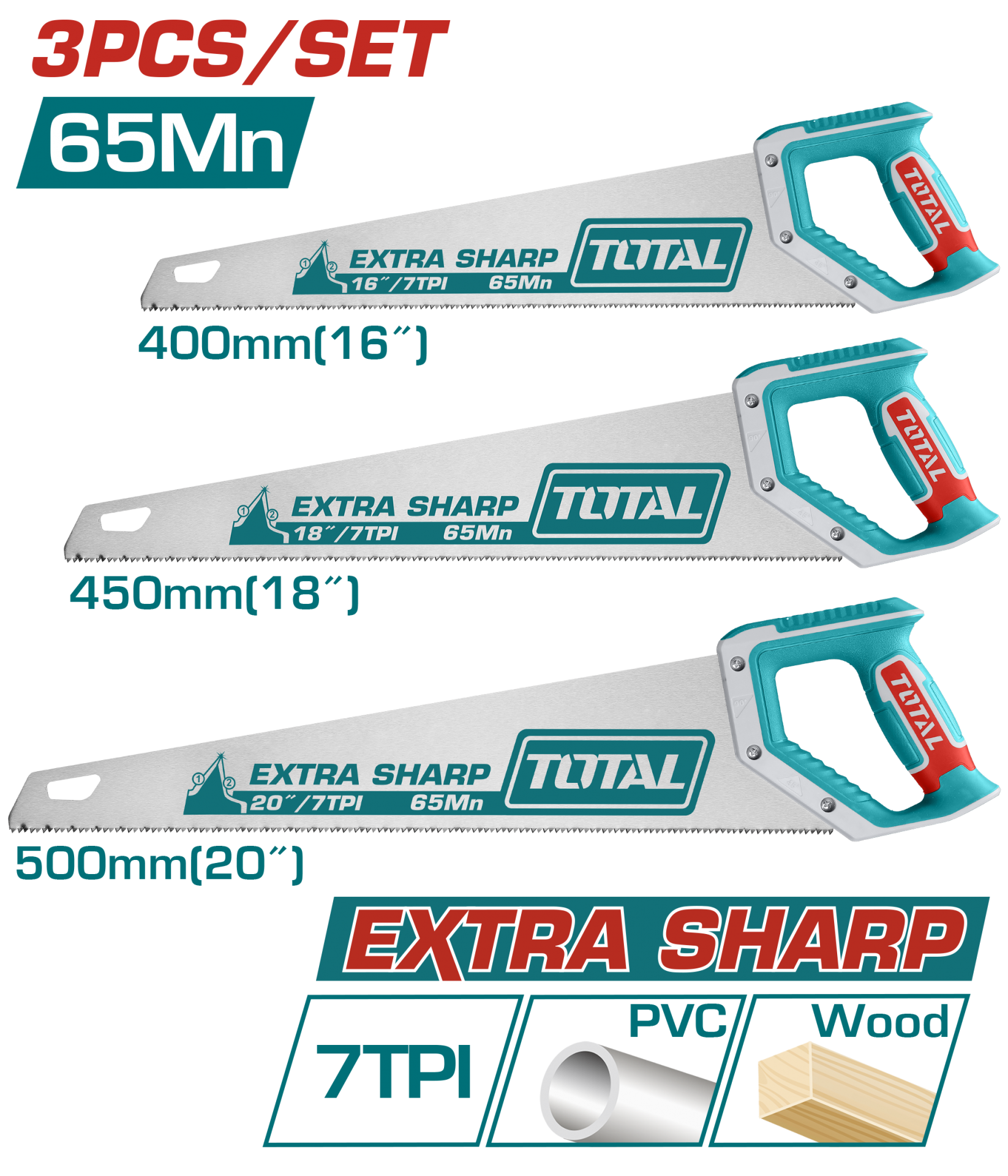 Total 3 LÜ PALA TESTERE SETİ, alet seti olarak endüstriyel ve profesyonel kullanım için üretilmiştir. Yüksek kaliteli malzeme ve işçiliği ile zorlu iş koşullarında güvenilir ve uzun ömürlü performans sunar. Verimliliği artıran özellikleriyle hem profesyonellerin hem de hobi ustalarının tercihidir.