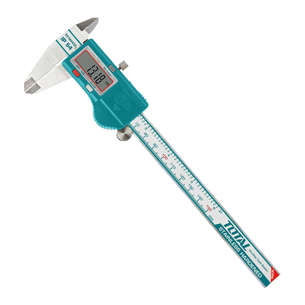 Total Dijital Kumpas 150 mm, iç çap, dış çap ve derinlik ölçümlerinde milimetrik hassasiyet sunar. Paslanmaz çelik gövdesi uzun ömürlü ve dayanıklı kullanım için üretilmiştir. Kolay okunabilir skalası ile hızlı ve doğru ölçüm yapılır.