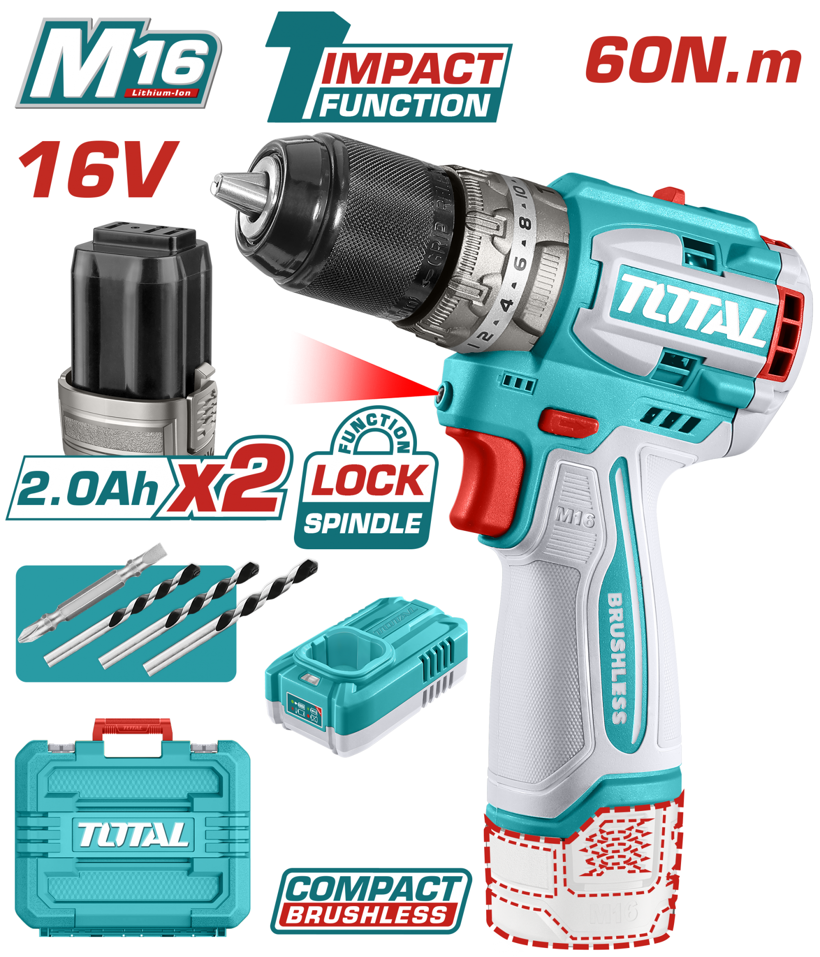 Total LI-ION AKÜLÜ DARBELİ KÖMÜRSÜZ MATKAP, metal, ahşap ve beton gibi malzemelerde hassas delme işlemleri için üretilmiştir. Li-ion akülü kömürsüz motor teknolojisiyle sayesinde zorlu yüzeylerde bile yüksek verim sağlar. Ayarlanabilir hız ve vites özellikleri farklı uygulama ihtiyaçlarına kolayca uyum sağlar.