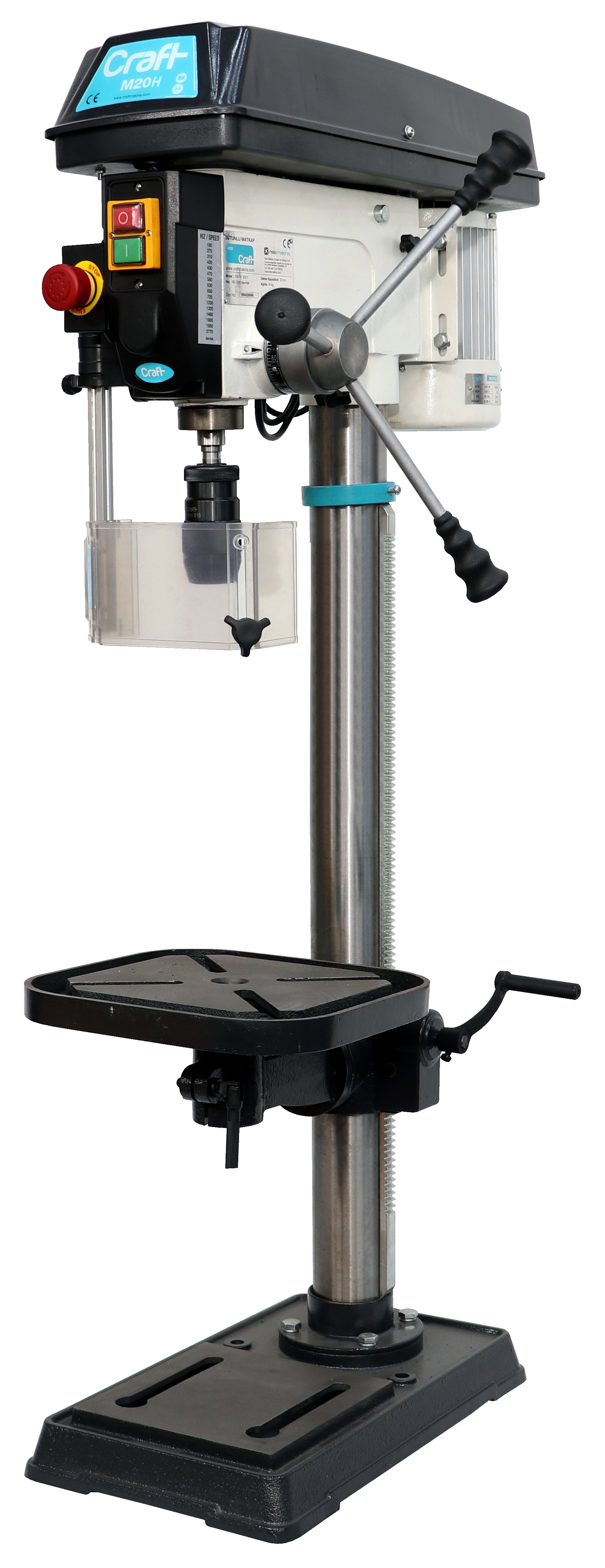 Motor Gücü550 W, 400 VÇalışma TipiKayışlıDelme Kapasitesi20 mmMil-Sütun Arası Mesafe180 mmMil KoniğiMK2Mil Hareketi/Strok85 mmHız180-2770 dev/dakKademe16Tabla Ebatı290×290 mmT Slot Ölçüsü14 mmTabla Dönüşü±45° / 360°Mil-Tabla Arası Mesafe700Mil-Taban Arası Mesafe1190Taban Ebatı460×272 mmSütun Çapı72 mmUzunluk x Genişlik x Yükseklik650x360x1570 mmNet Ağırlık70 kg