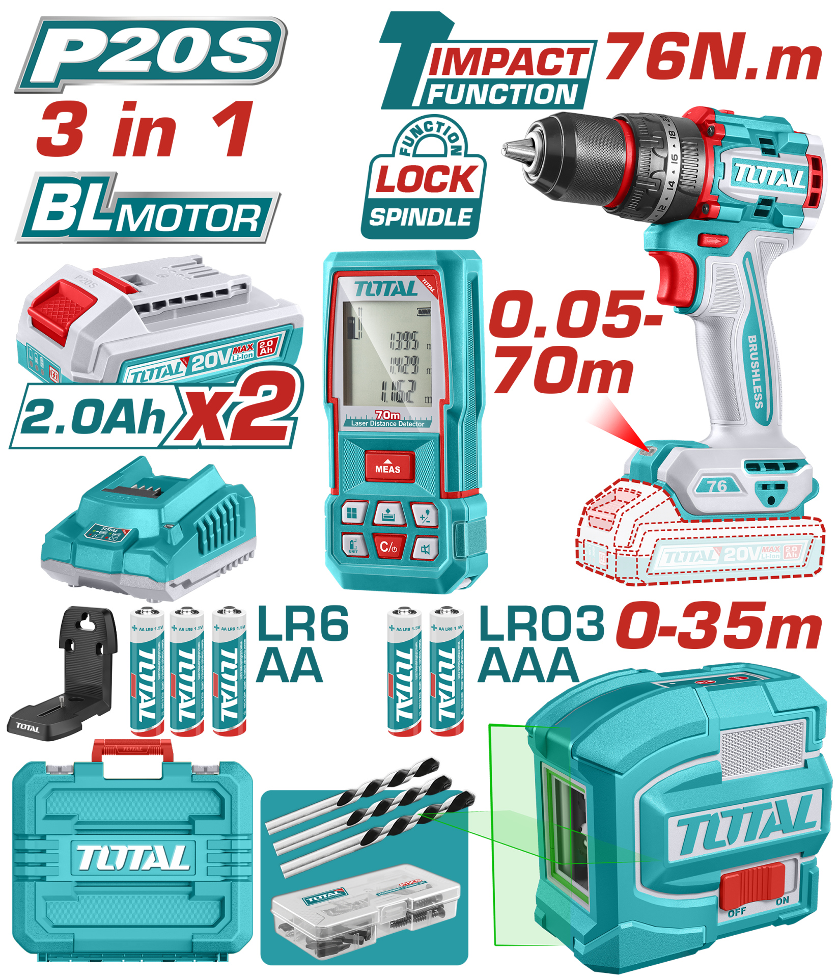 Total AVANTAJ SET – MATKAP, LAZER METRE, LAZER HİZALAMA
