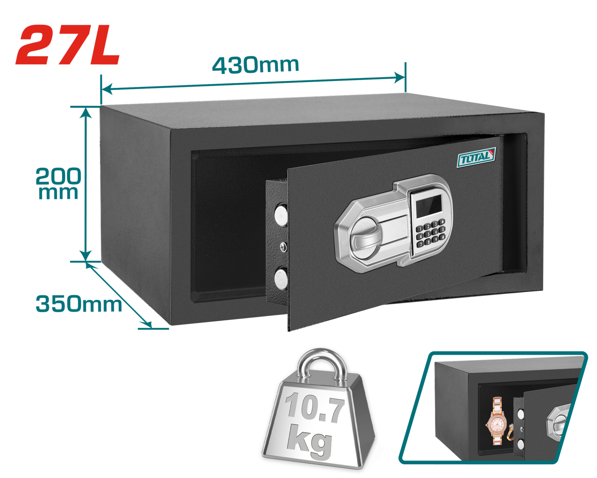 Total ELEKTRONİK ŞİFRELİ PARA KASASI 27L